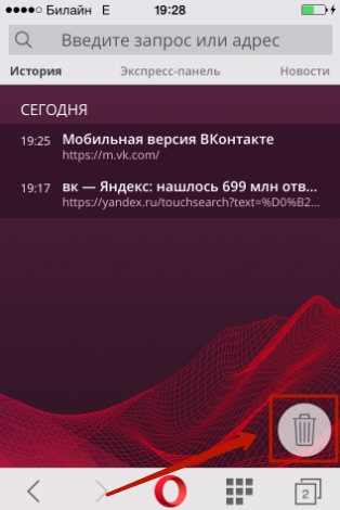 Удаление истории в Opera Mini – процедура ещё более простая: