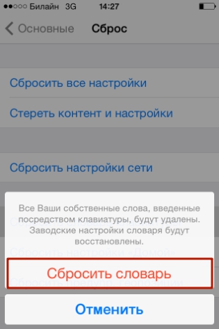 Если словарь вашего iPhone состоит сплошь из бессмысленных конструкций и слов с ошибками, лучше историю автозамен удалить. Выполняется эта процедура следующим образом: