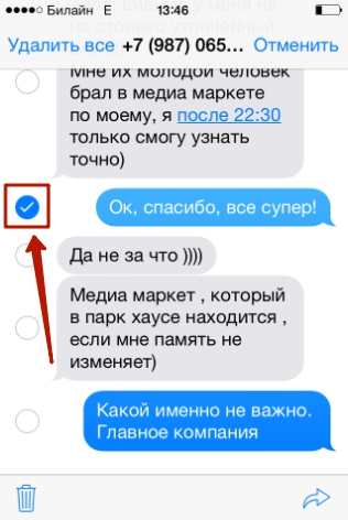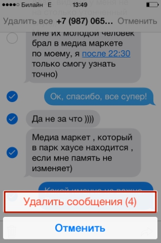 При необходимости стереть конкретные сообщения, действовать следует иначе: